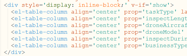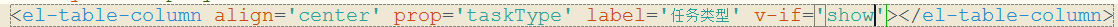 回到显示和隐藏上面来,在element-ui中的table中,控制某一列的隐藏和显示,想到的是使用v-show,但是之前用过了不行,没起作用。后面网上查了一下,发现使用v-if是可行的。至于为啥,我也说不上来。于是就有了这样: