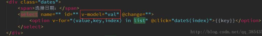 1、使用v-model在select标签上进行数据双向绑定,
