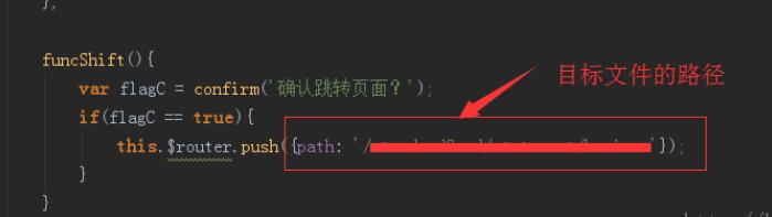 但是有时的需求是页面不直接跳转,有确认弹框或者其他事件,此时就需要在js中设置跳转,常用的一种方法是 .$router.push ,用法如下: