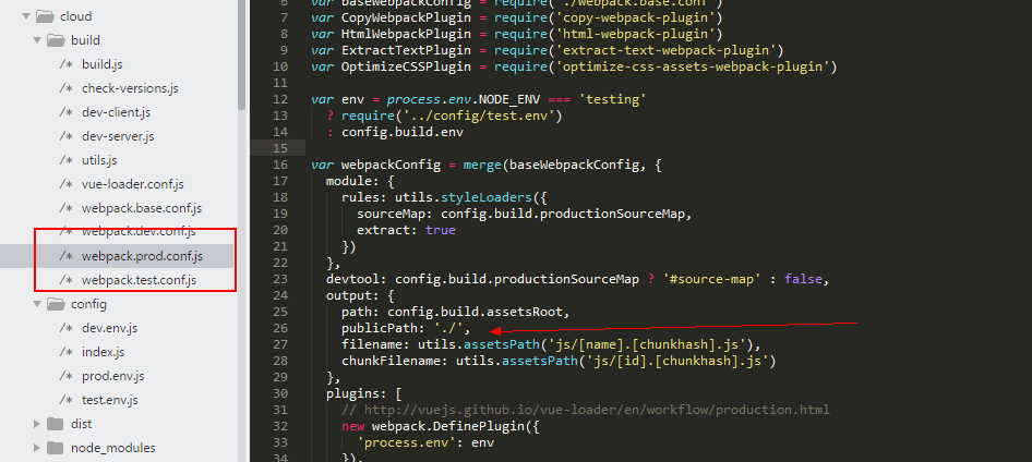 找到build下面的webpack.prod.conf.js 添加 publicPath:"./",
