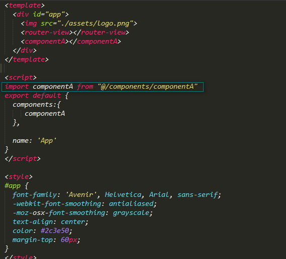 importcomponentA @/components/componentA //下图ruter-view标签仅仅表示显示,有组件不一定能够显示,必须要router-view一下;当前app.vue为默认根模块;