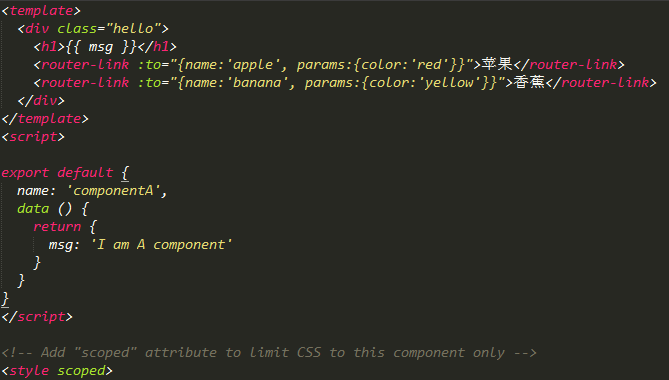 在Banana中应该这样: <一个标准的vue文件应该包括 下面三种大类的标签> 其中name属性必不可少;