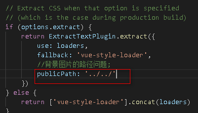 项目完成后用 npm run build可以打包项目; 打包配置在config文件夹下的 index.js 的 build对象下;如需在本里预览,assetsPublicPath: './',改成相对路径; 如果你的css文件中引用了background相对路径,那么在打包后预览后是会出现资源找不到的情况的;可以在build文件夹的utils.js下:新增这个publicPath这个属性;