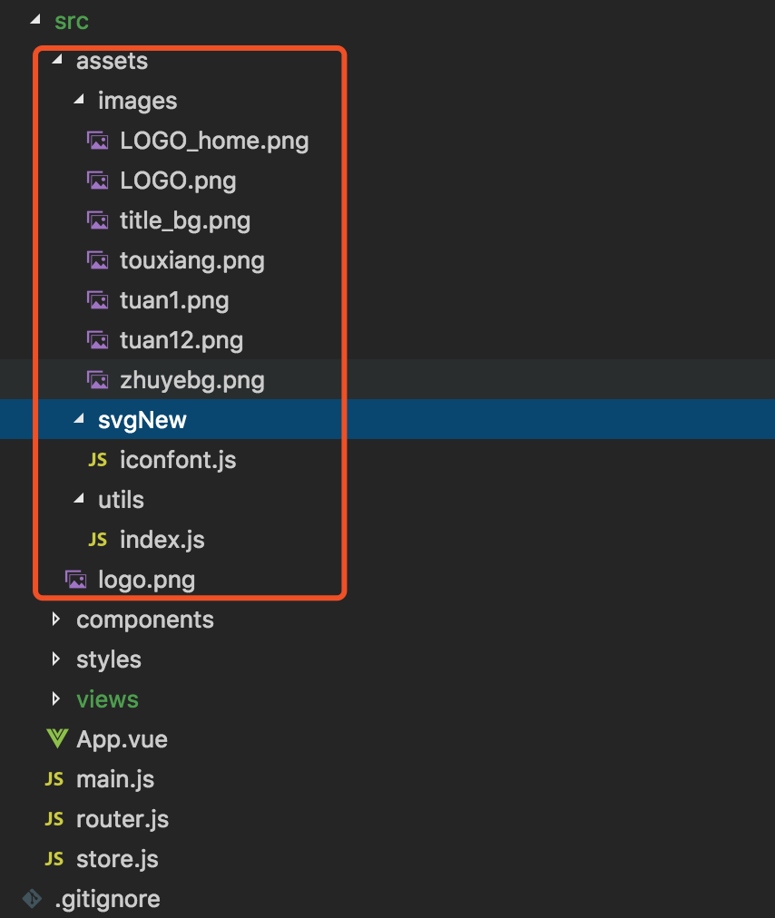 放置静态文件,例如:图片,js,svg的js等等啊,这个目录下的文件在生产环境下会被webpack copy