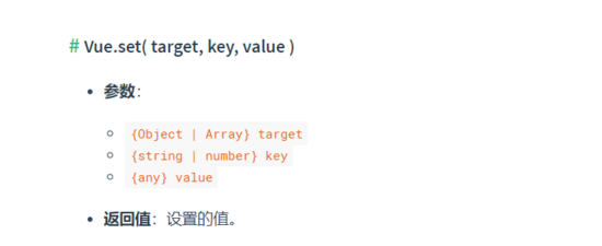 我们发现set函数接收三个参数分别为 target、key、val,其中target的值为数组或者对象,这正好和官网给出的调用Vue.set()方法时传入的参数参数对应上。如下图所示: