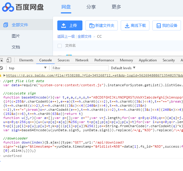 调用“context.js”脚本就可以拿到文件列表,文件列表中保存了当前目录所有文件的fs_id。