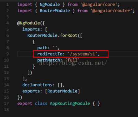 第二步:此时可以创建一个app-routing.module.ts 文件来放总路由,其中的redirectTo为打开项目时的路由定向。