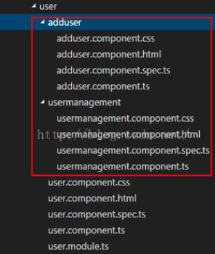 这里我创建了两个组件分别叫做usermanagement & adduser,同样生成以下文件