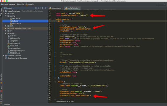 然后修改 下面两处assetsPublicPath 的值为定义的变量