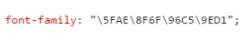 尝试了一下去掉双引号,也就是font-family:微软雅黑,这样浏览器并不会把中文字体用unicode编码,样式也可以正常显示。但为了更好的兼容性,这里作者推荐使用中文字体的英文编码,如:font-family:'Microsoft YaHei'。