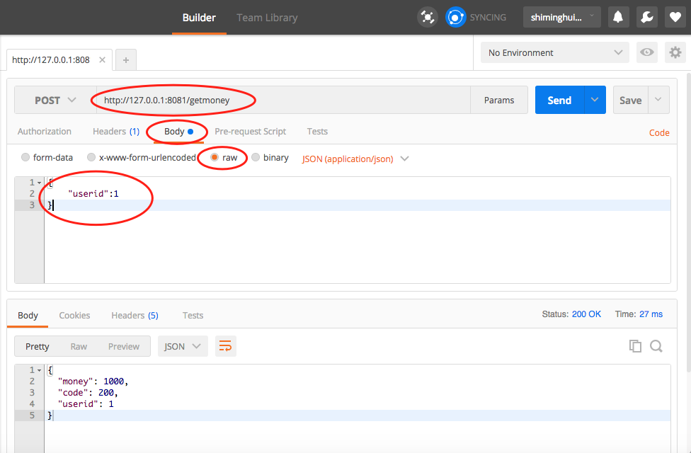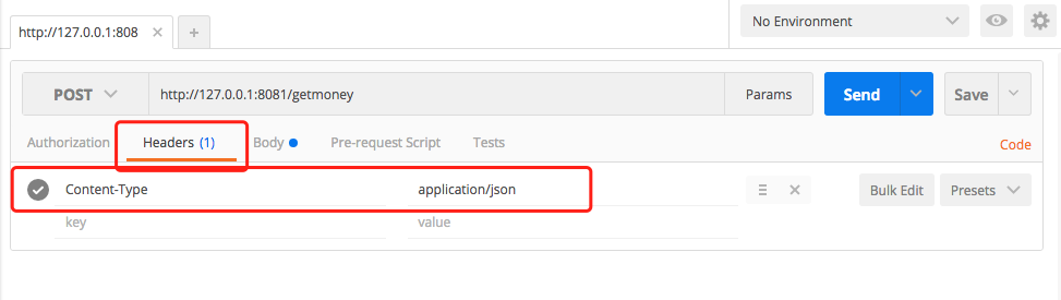 在地址栏里输入请求url:http://127.0.0.1:8081/getmoney