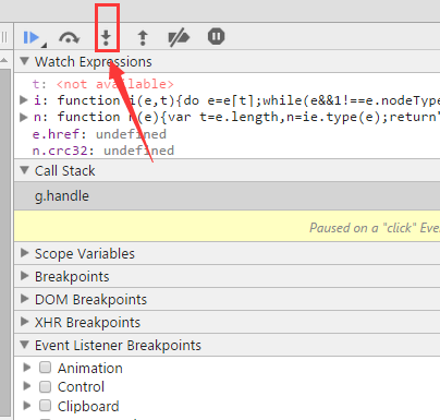 5.一路按如下图标或按F11,直至发现事件是直接事件源。