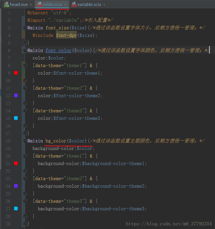 @mixin font_color($color){/*通过该函数设置字体颜色,后期方便统一管理;*/