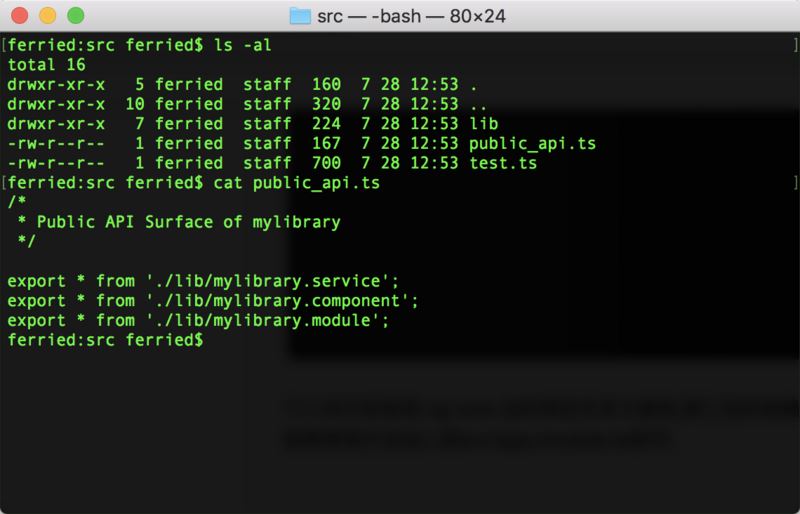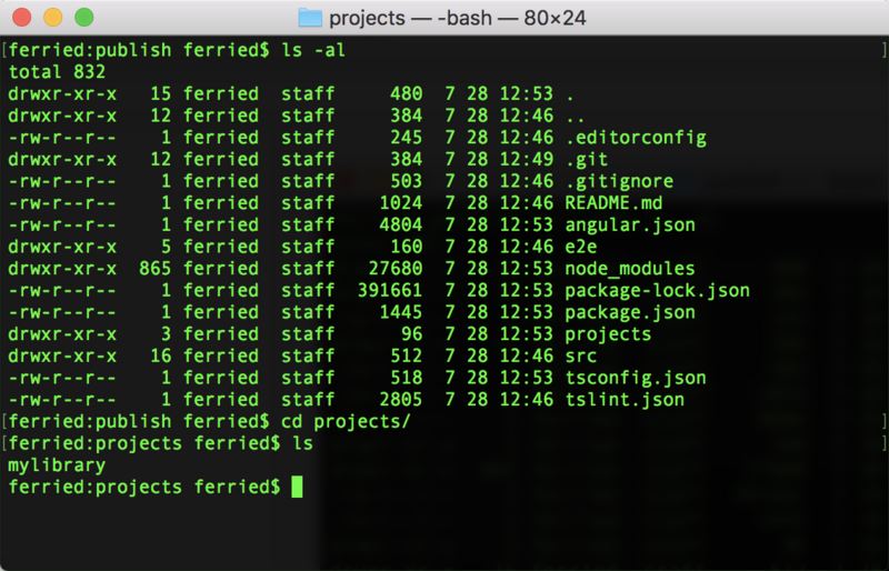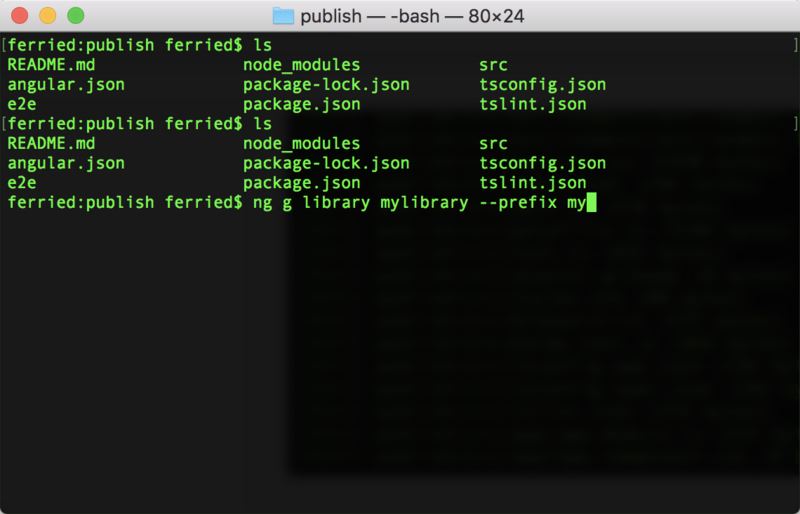 # libraryname : 第三方包名字 # prefix : 组件前缀(如 nz-zorro 的组件前都是 nz-xxx) cd projectname ng g library libraryname --prefix prefix