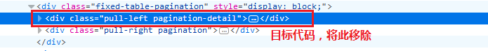 通过捕获可知,此处的html代码是一个大div,里面包含两个小div,一个为上图左边显示每页记录数的,另一个为右边显示多少页的。那么现在就是要将左边的div获取到,然后移除,并拼接自己的html.