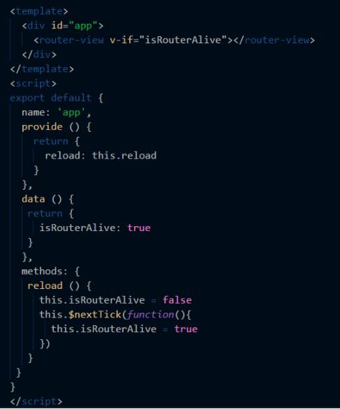 声明reload方法,控制router-view的显示或隐藏,从而控制页面的再次加载