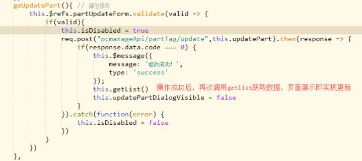 3.这样再次调用获取数据,即可同步实现页面数据更新(不会重新刷新页面),同时保证有分页时,能够停留在当前页(刷新前如果是第二页,刷新后依然在第二页),