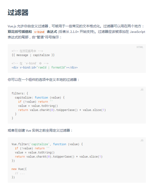 vue filter 的官网介绍 https://cn.vuejs.org/v2/guide/filters.html