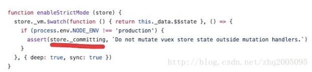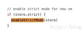 _withCommit 函数的参数 fn 就是修改state的函数。在执行 fn() 之前,会将 this._committing 设置为 true。等到fn()执行完毕后,又将 this._committing 的值进行恢复。那么为什么要将 this._withCommitting设置为true,其作用到底是什么。在vuex/src/store.js 的开头发现了判断严格模式的代码: