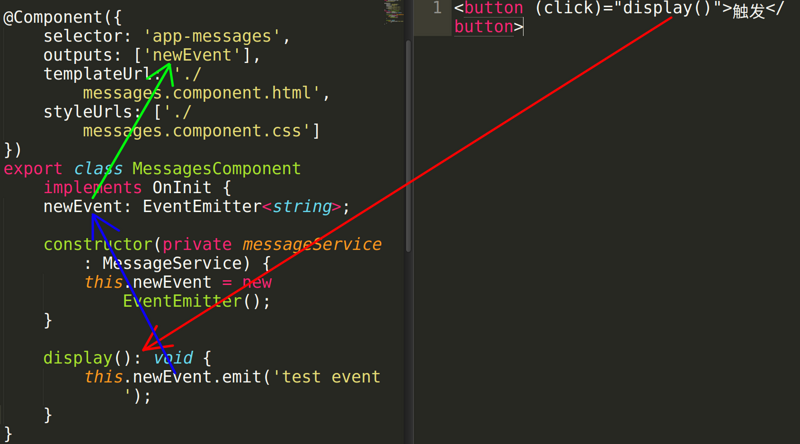 3.在适当的时候,也就是要触发的方法中,通过EventEmitter触发事件