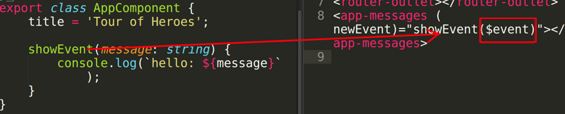 <app-messages (newEvent)="showEvent($event)"></app-messages>