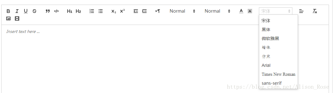 把需要自定义放在字体列表的字体放在这个css中,选择器如下。data-value后的值是要拼在.ql-font-后面的,需要保持一致。