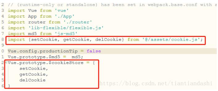 2、在main.js中引入并且将cookie设置成vue的全局变量