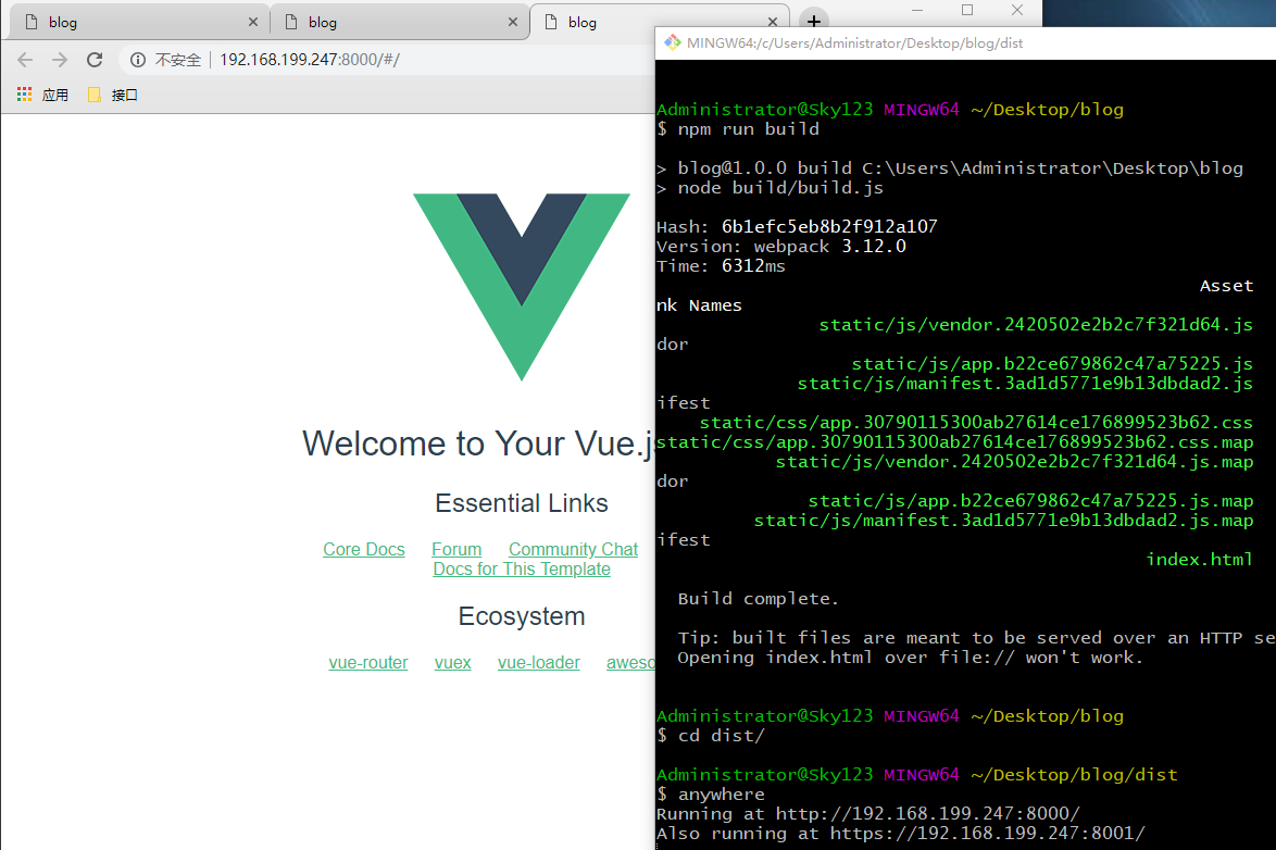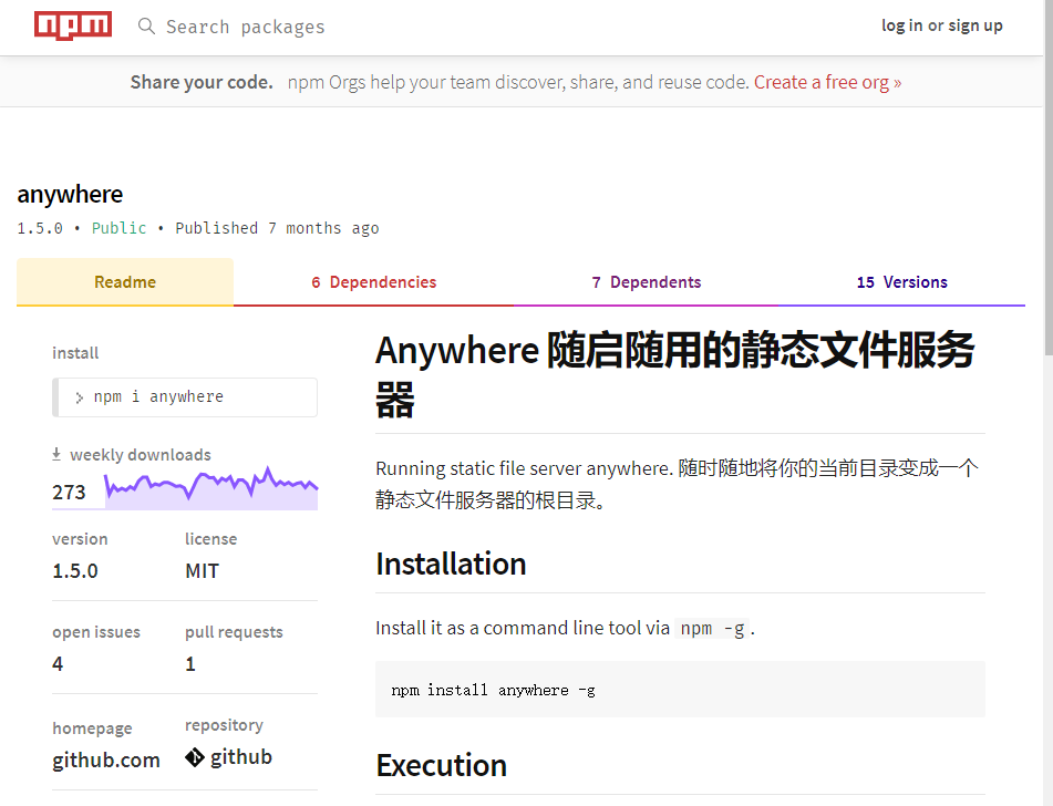 cd 到我们的 dist 文件夹中,然后 anwhere 就可以启动了。