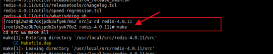cd /usr/local/src //进入存放redis的文件 tar -xzvf redis-4.0.11.tar.gz //解压文件