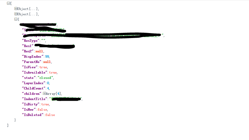 第一步,先构建根节点的数据表,后台返回JSON数据解析(www.json.cn)基本如下