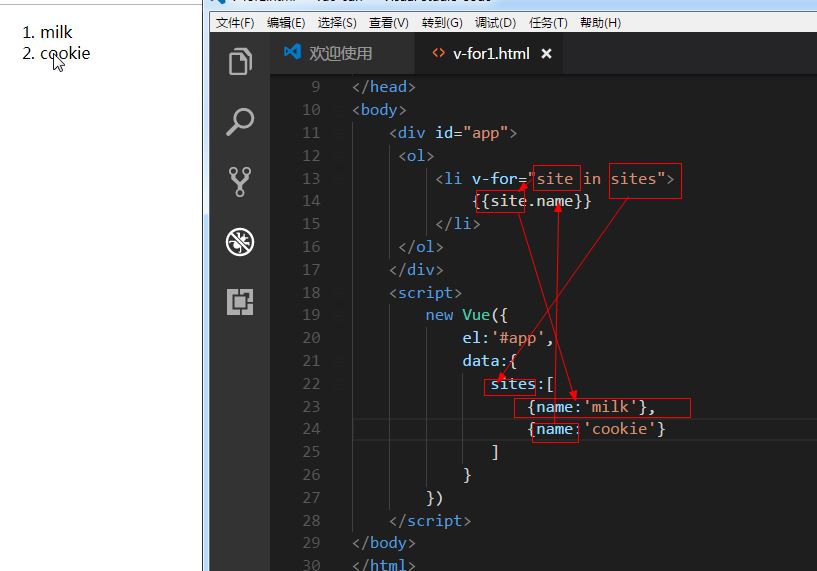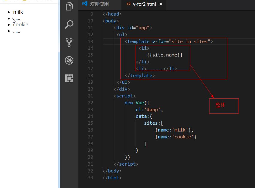 模板中使用 v-for