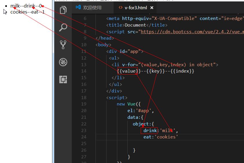 v-for 可以通过一个对象的属性来迭代数据