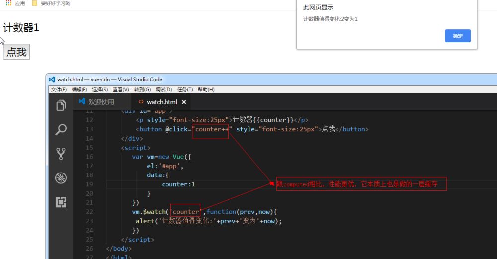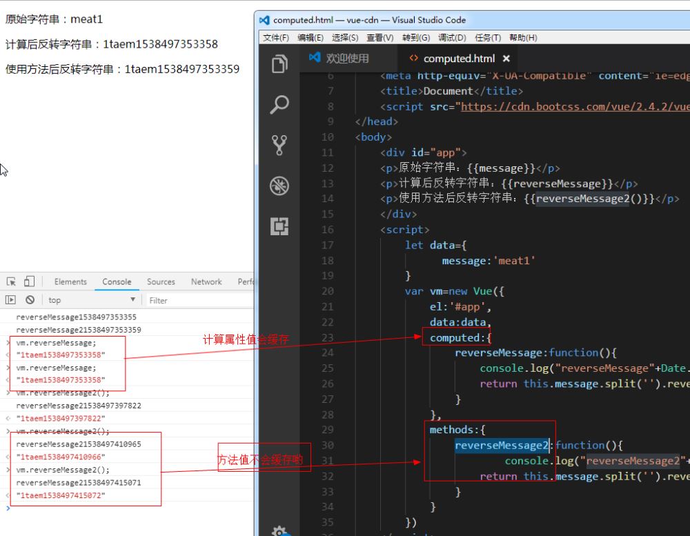 computed与method 可以说使用 computed 性能会更好,但是如果你不希望缓存,你可以使用 methods 属性。