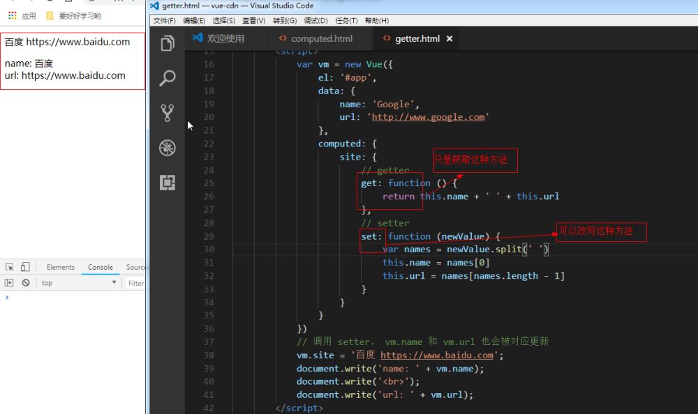 computed 属性默认只有 getter ,不过在需要时你也可以提供一个 setter