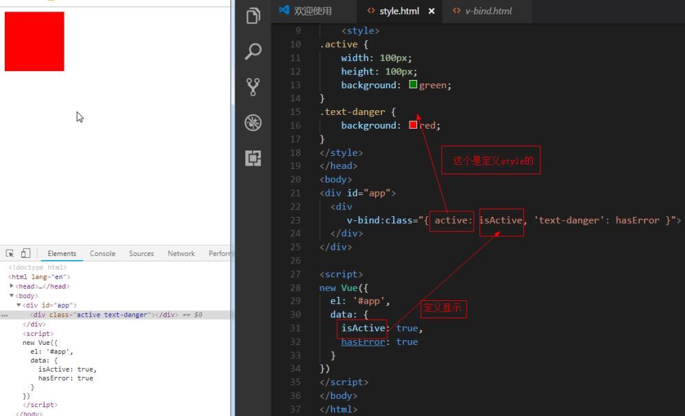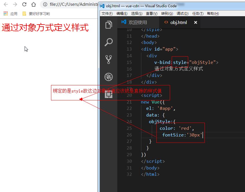 直接绑定到一个样式对象,v-bind:style 可以使用数组将多个样式对象应用到一个元素上