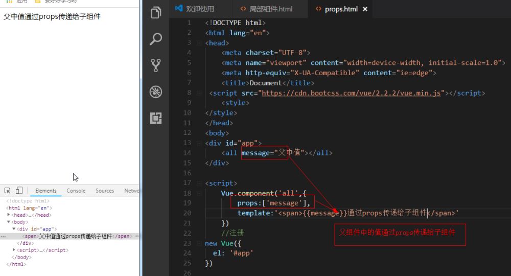prop 是父组件用来传递数据的一个自定义属性。父组件的数据需要通过 props 把数据传给子组件,子组件需要显式地用 props 选项声明 "prop"