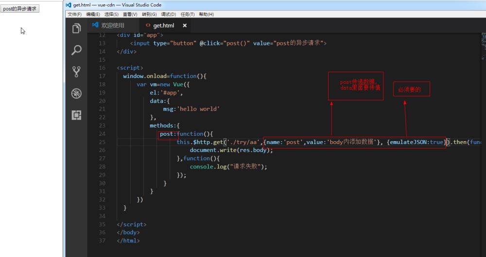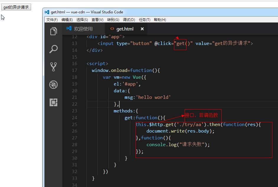 Ajax Vue 要实现异步加载需要使用到 vue-resource 库 get请求