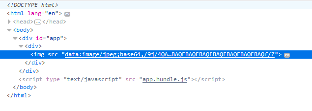 在dist目录下面找到build成功的index.html页面。在浏览器的控制台中可以看到图片以base64的格式加载进页面。