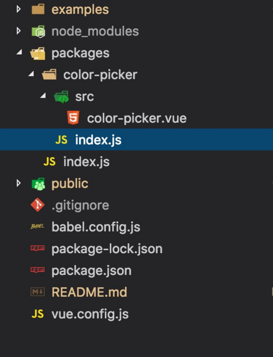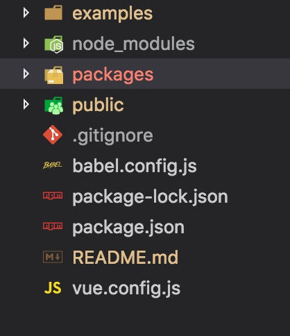 . ... |-- examples // 原 src 目录,改成 examples 用作示例展示 |-- packages // 新增 packages 用于编写存放组件 ... .