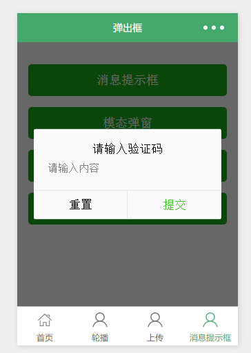 <modal hidden="{{hiddenmodalput}}" title="请输入验证码" confirm-text="提交" cancel-text="重置" bindcancel="cancel" bindconfirm="confirm">
