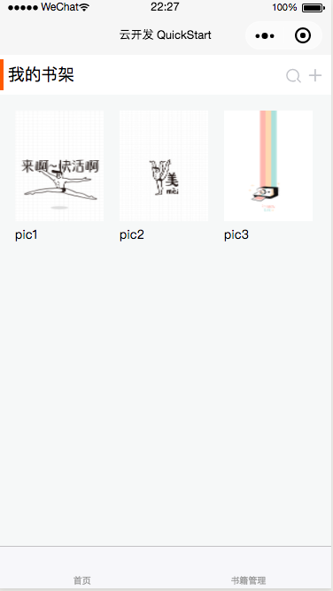 云开发模板建立之后,会带有一些相关例子可以熟悉api。