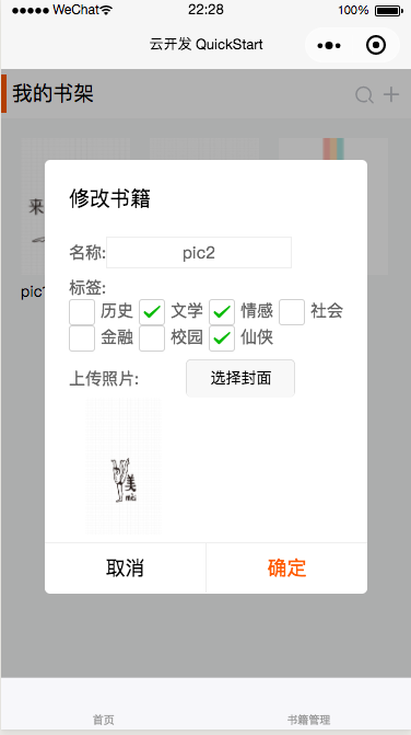 本例以上传书籍信息为实际应用,实现基本的书籍信息增删改查功能,以及图片的上传删除。