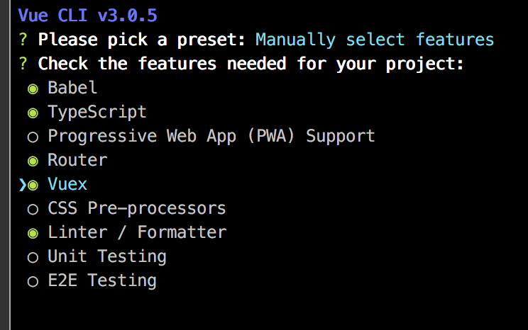 在下面的选项中选择Manually select features,点击enter后,在显示的列表中通过上下键+空格选择需要的插件。下面根据需要选择即可。