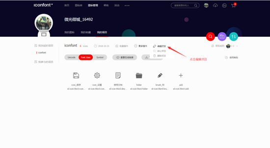 5. 点击添加后,进入我的项目这个页面,会显示自己已经选择的图标,在点击下载到本地前,要注意配置一下图表选项,