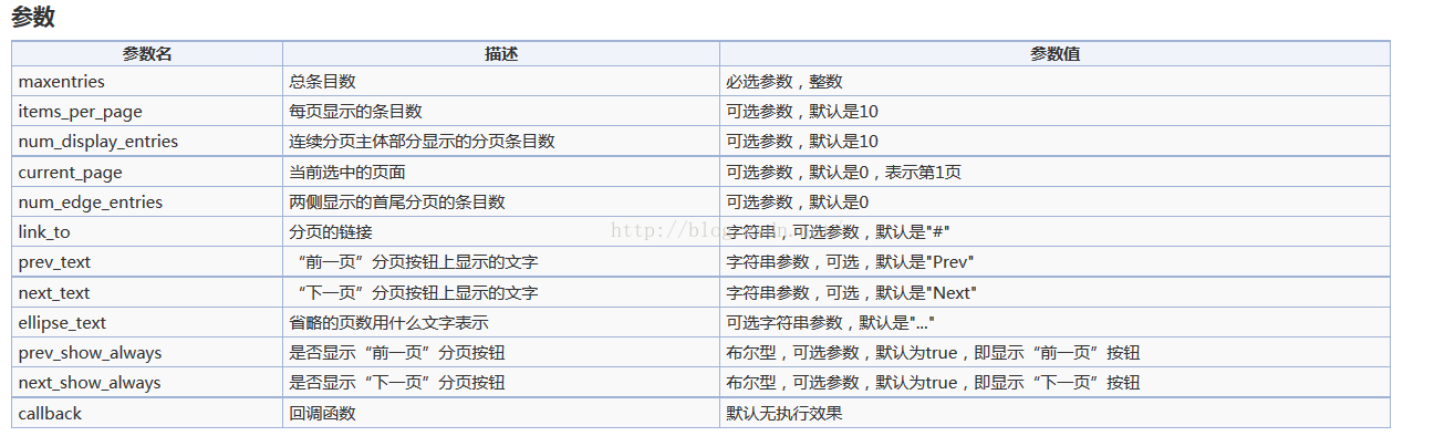 第三步:生成分页条方法是pagination,例如$("#page").pagination(100); 传入总数目