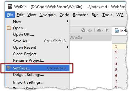 (1)打开Webstorm2016,菜单中选择“File >> Settings…”;