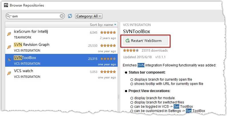 2. 在Webstorm2016中安装“SVNToolBox”插件