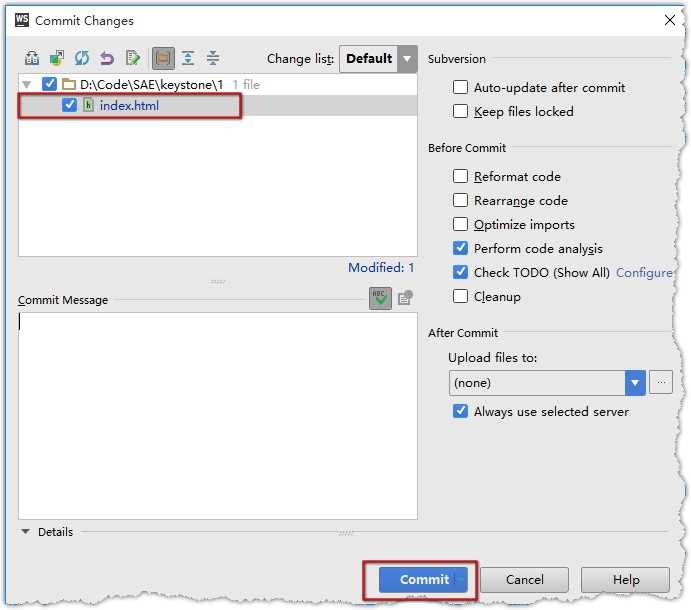 (3)选择被修改的代码文件,然后单击“Commit”按钮;