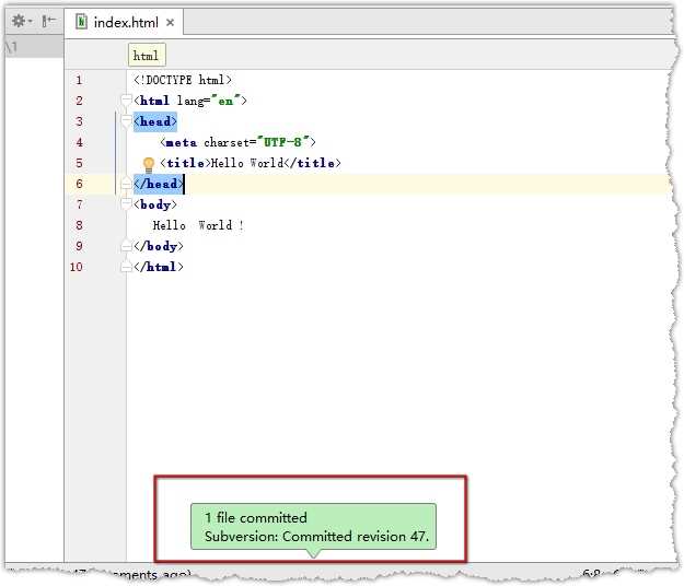 (2)在项目的代码编辑窗口,单击右键,可以对该代码文件进行SVN上传等操作。这里我们修改下代码后,在代码编辑窗口中点击右键,然后点击“Subversion >> Commit File…”;