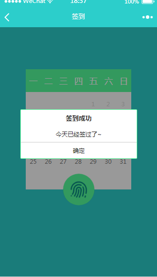 今天是16号,所以显示已签到,渲染页面时请求后台传的参数为这月签到的日期